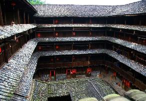 Heguilou: Heguilou is located in Pushan Village, Meilin Town. This large square building is 21.5 meters and five stories high. It is the highest of all the earth buildings and most interesting of all,it was constructed on a swampland and has been impregnable for more than 200 years.